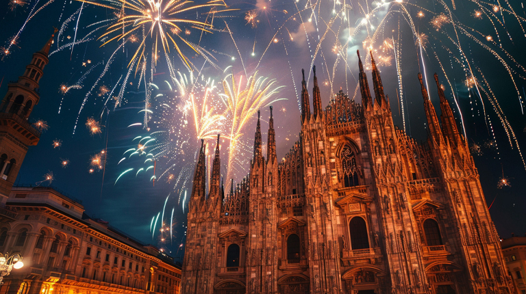 Provedite poslednje sate godine na prelijepom trgu ispred katedrale Duomo, uživajte u svjetlucavim dekoracijama, živim nastupima i čarobnoj atmosferi koja zrači iz svakog kutka grada. Kada sat otkuca ponoć, vatromet osvaja nebo nad Milanom, pružajući jedinstven doček za ljubitelje glamura i dobrog provoda.
